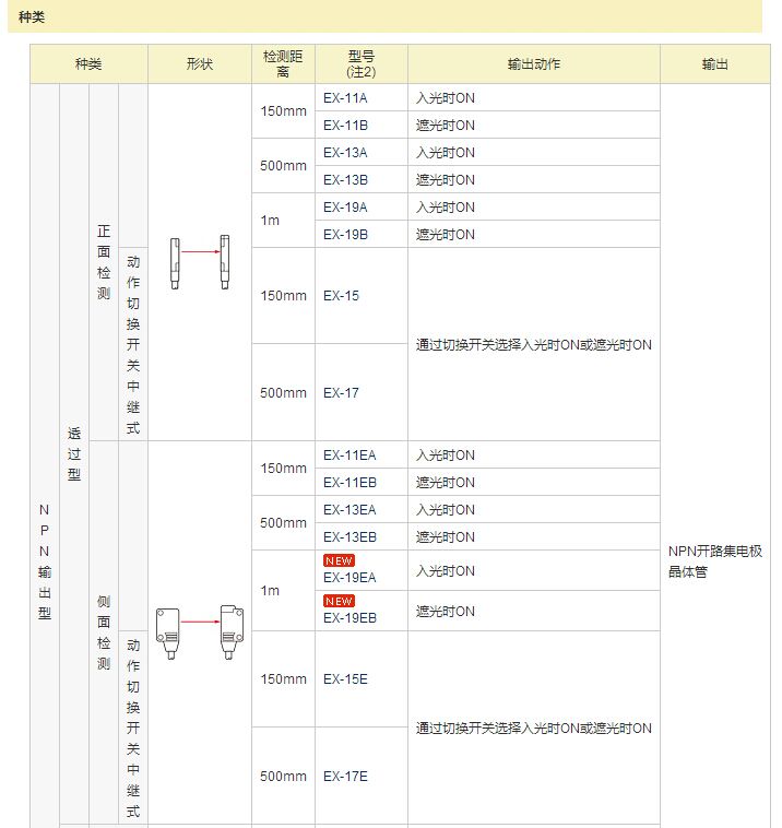 透過型側(cè)面檢測型 EX-19E□。