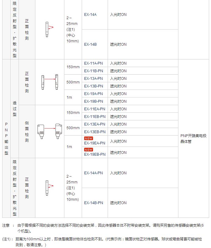 擴散反射型傳感器是正面檢測,由于薄,看上去可被直接粘合在安裝基座上,透過型傳感器可同時進行正面檢測和側(cè)面檢測,并可靈活安裝。