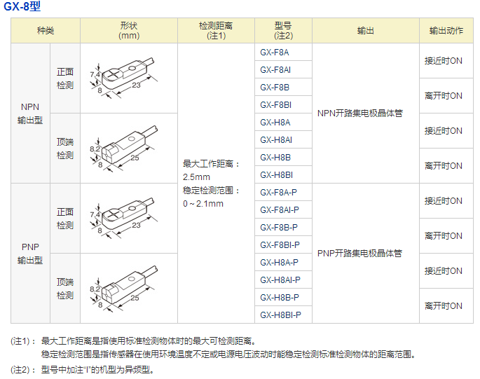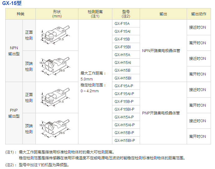 GX-15型實現(xiàn)了最大動作距離8.0mm±8%的長距離型的添加。